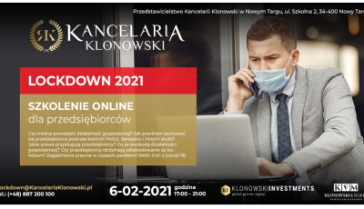Kancelaria Klonowski, działająca między innymi przez Autoryzowane Przedstawicielstwo w Nowym Targu przy ulicy Szkolnej 2 oraz strukturę obsługi mobilnej organizuje darmowe szkolenie online dla...